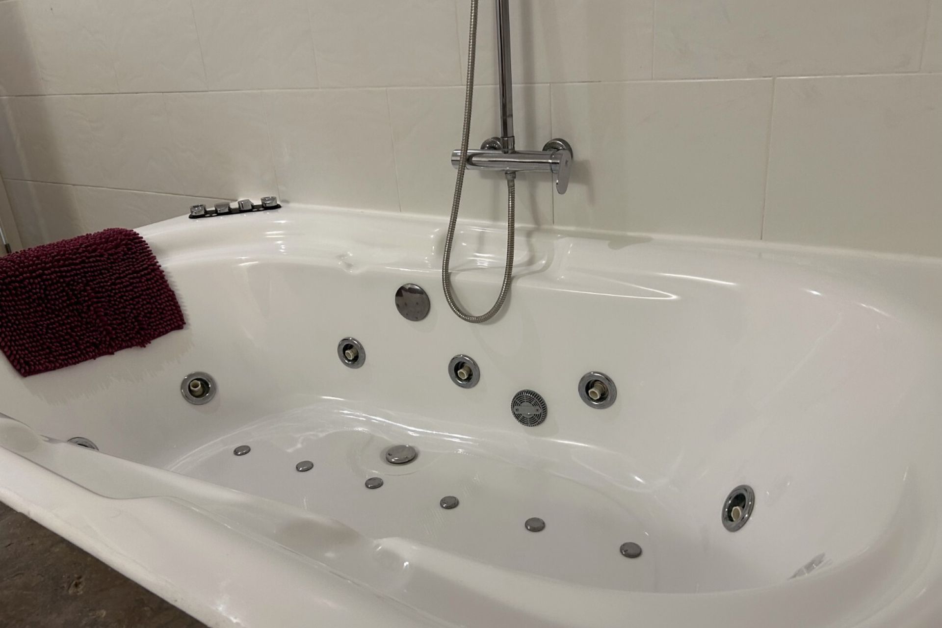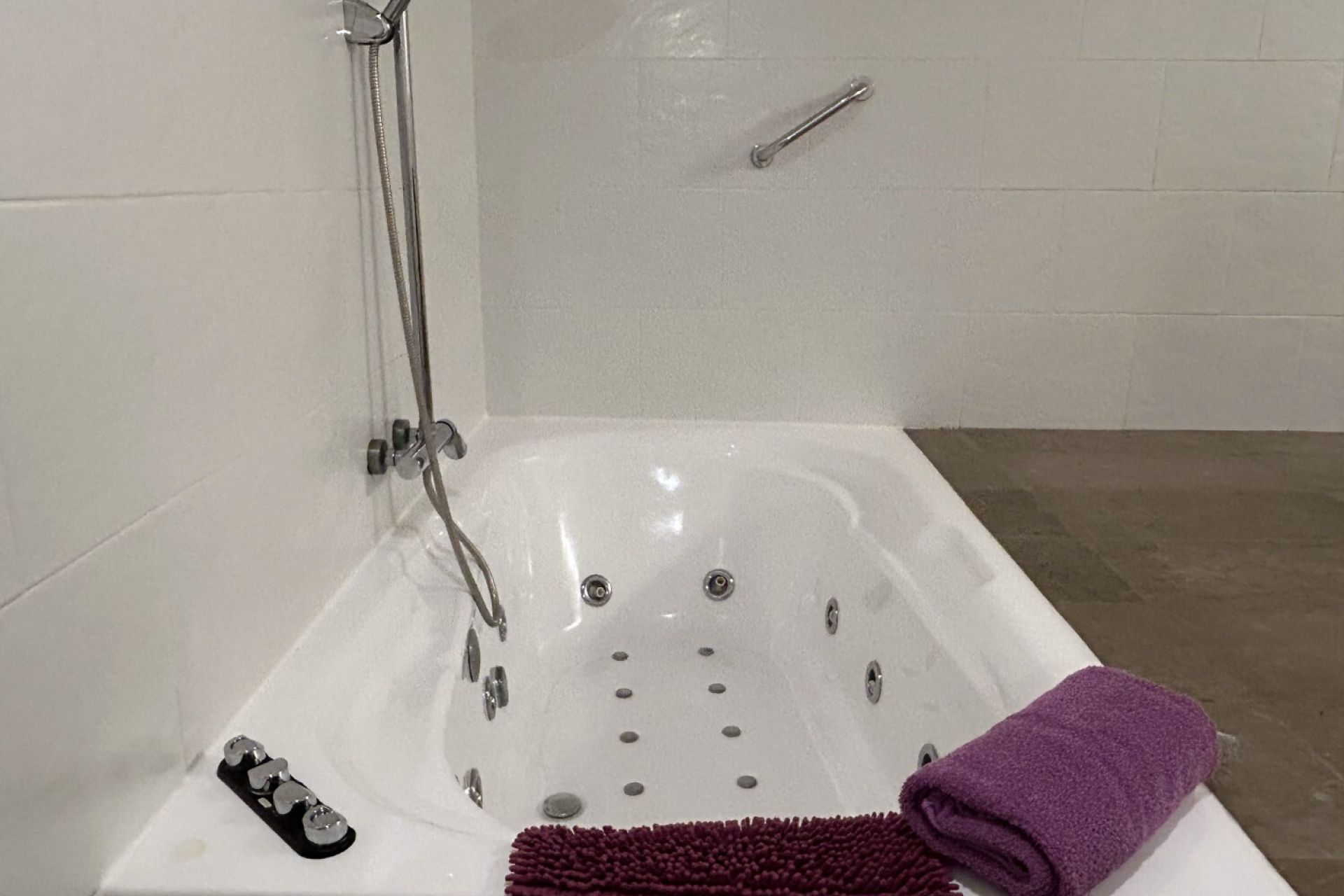 Uno de sus apartamentos más destacados incluye un amplio salón comedor con cocina, un baño con plato de ducha y una acogedora habitación de matrimonio equipada con un gran jacuzzi, ideal para relajarse.